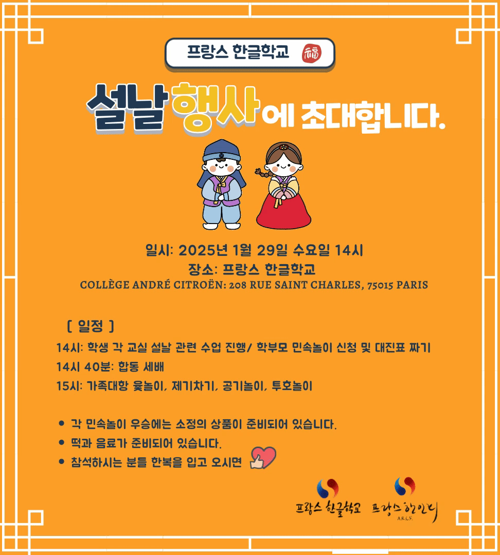 2025 구정을 맞아 1월 29일 수요일 설날행사를 한글학교 가족 모두 함께 합니다.