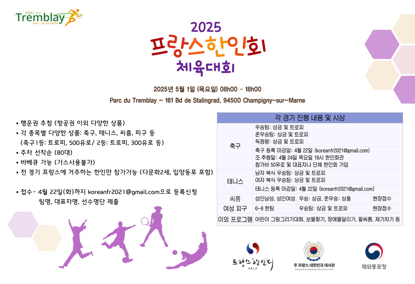 2025 프랑스 한인 체육대회가 아래와 같이 열립니다.